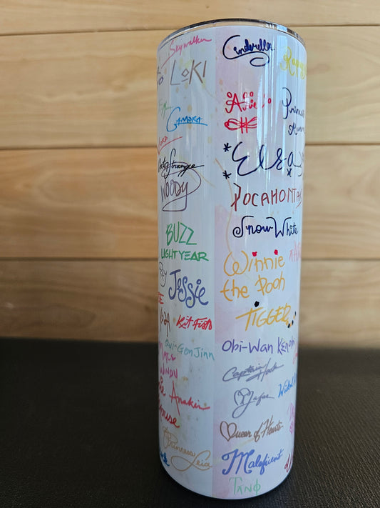 Cartoon Magical Princess and Super Hero Autographs 20oz Tumbler