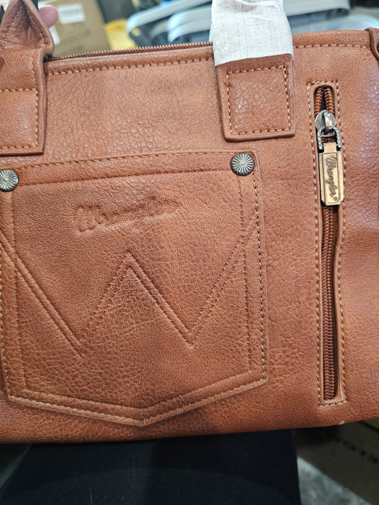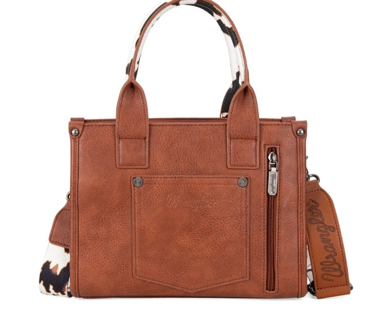 Wrangler Concealed Carry CrossBody Brown Tote with Cowprint Trim