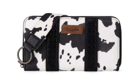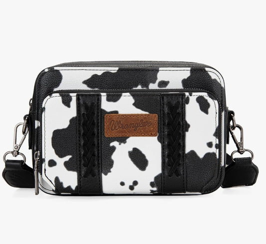 Wrangler Cow Print Crossbody Purse With Wallet Compartment - Black