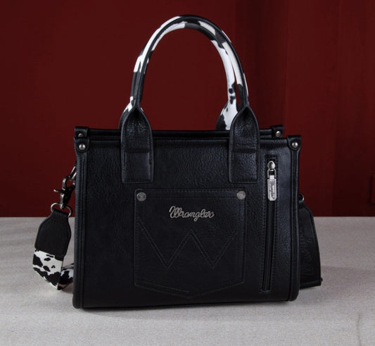 Wrangler Concealed Carry Crossbody Tote with cowprint accent BLACK