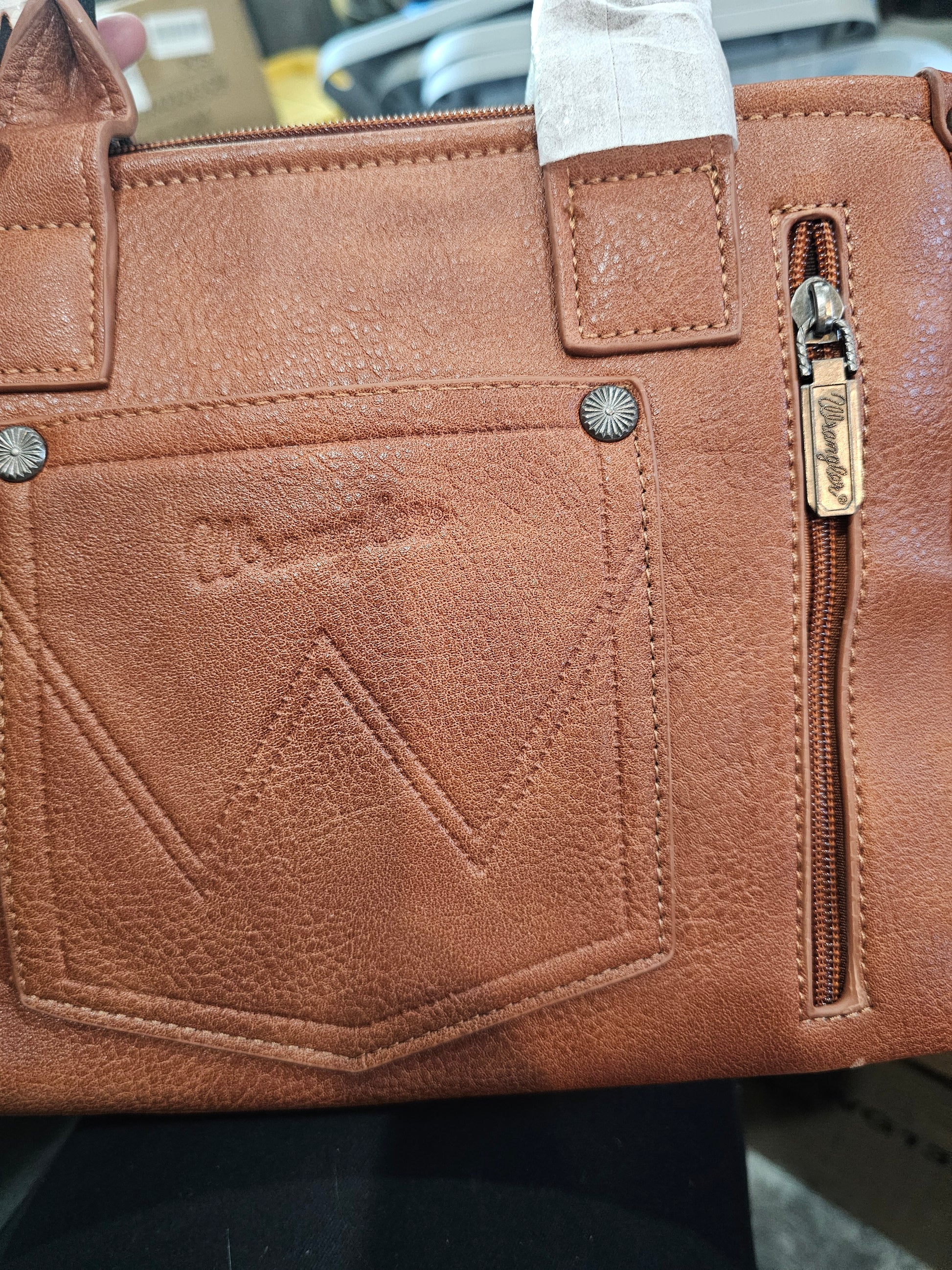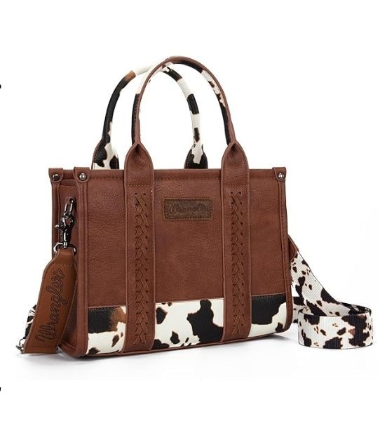 Wrangler Concealed Carry CrossBody Brown Tote with Cowprint Trim