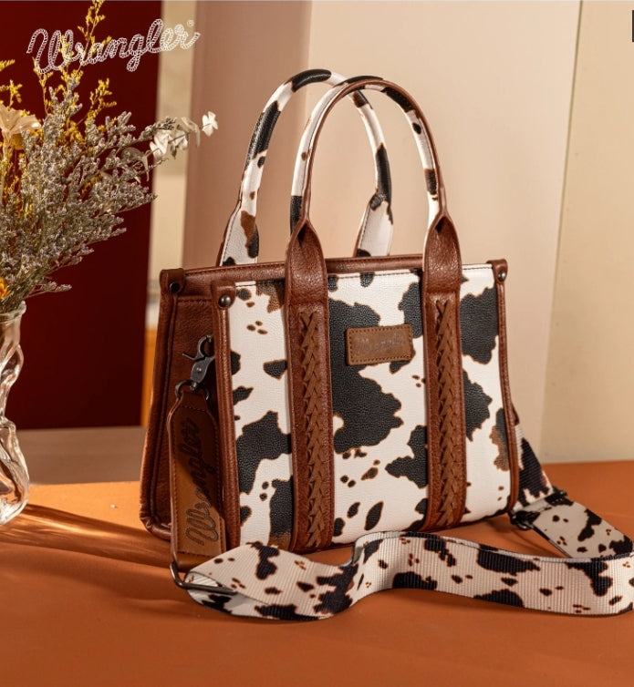 Wrangler Cowprint Concealed Carry Crossbody Tote Brown