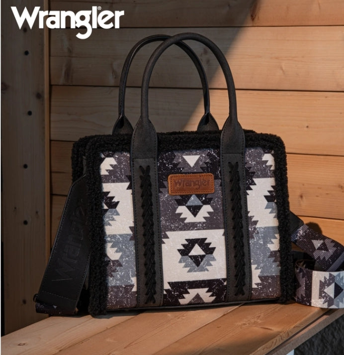 Wrangler Sherpa Southwestern Print Concealed Carry Small Canvas Tote/Crossbody Black